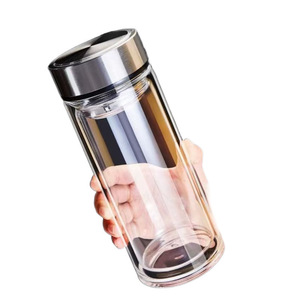 摔不烂钢化玻璃杯耐摔高温硼硅双层玻璃杯保护套男士茶杯量大优惠