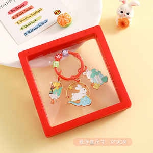 中秋金属挂件-踏云兔+悬浮盒红色