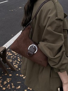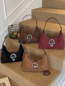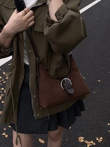 油蜡皮复古小包包女2025新款秋冬季百搭斜挎包时尚单肩腋下牛角包