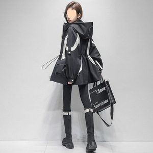 时尚撞色冲锋衣外套女2025春秋季新款收腰显瘦中长款休闲连帽风衣