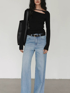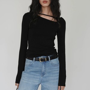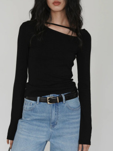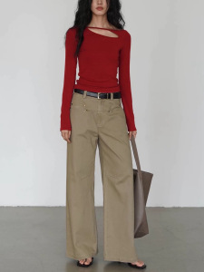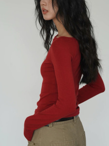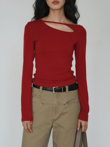 EIGHTHMONT 红色侧挖空长袖衣女设计感小众春季显瘦打底T恤