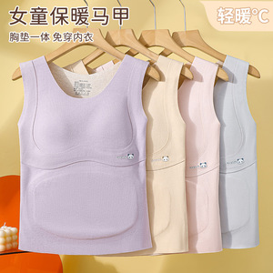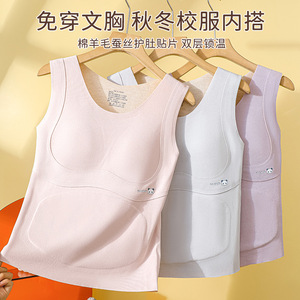 秋冬少女儿童德绒保暖背心自带一体杯垫免穿内衣无痕双面锁温背心
