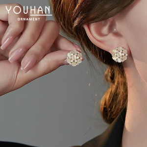 花朵珍珠耳钉女小众设计高级感耳环925纯银针耳饰2025年新款爆款