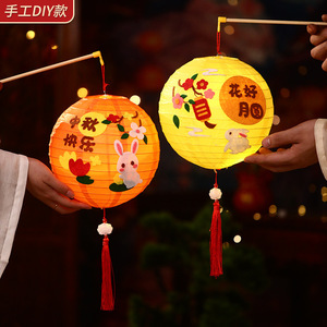 中秋节儿童手提灯笼2025新款折叠纸发光宫灯节日装饰DIY手工花灯