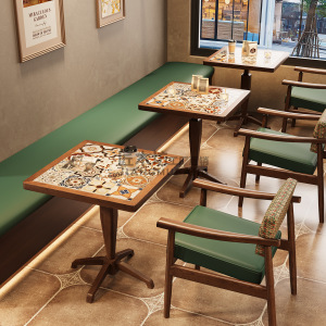 简约休闲咖啡厅沙发桌椅卡座扶手西餐厅甜品店奶茶店沙发桌椅组合