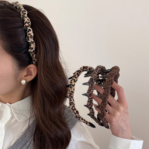 早秋豹纹高级感布艺缠绕带齿发卡发箍2025新款防滑头箍高颅顶发饰