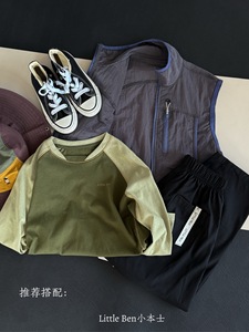 2025秋季新款儿童户外徒步运动打底衫插肩撞色舒适亲肤长袖打底衫