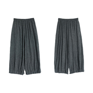 一口氧气「芝麻/花苞裤」亚麻棉肌理皱布全松紧腰宽松九分花苞裤