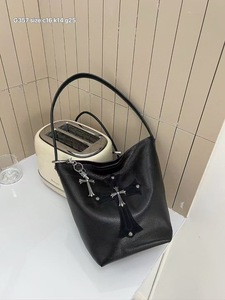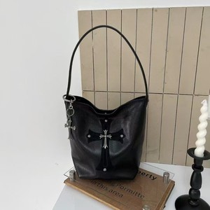 网红款克罗芯十字架复古水桶包小众高级感休闲酷炫辣妹单肩包包女