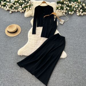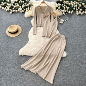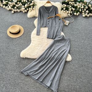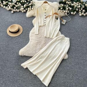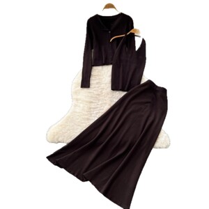 复古民族风针织辣妹套装女麻花长袖衬衫+挂脖背心+高腰中长半身裙