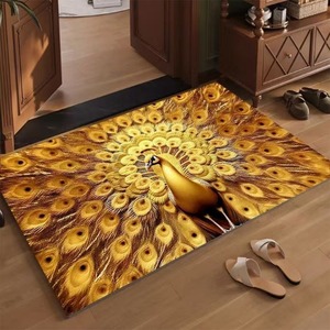 跨境中式孔雀水晶绒地毯入户门耐脏易打理地垫家用卧室地毯可代发