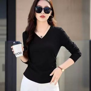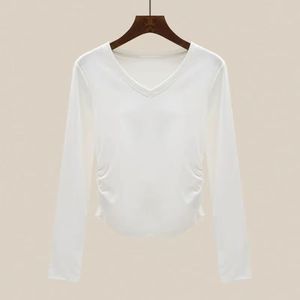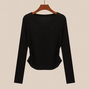 美式辣妹V领正肩长袖t恤女秋冬高级感内搭打底衫修身显瘦百搭上衣