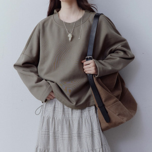 FUSS 双重人格_材质拼接+正反两穿_抗菌防静电_灰棕绿套头上衣