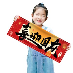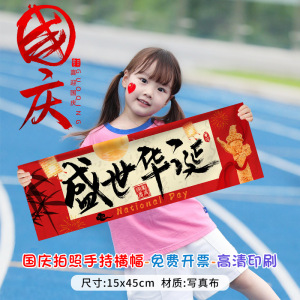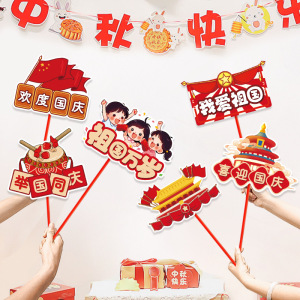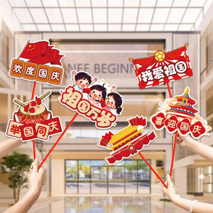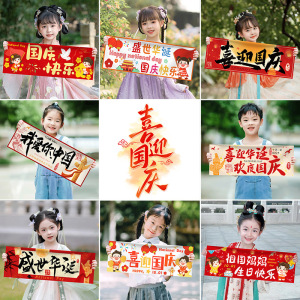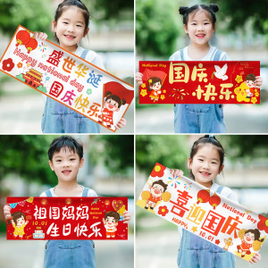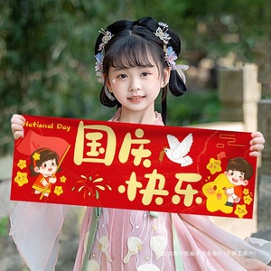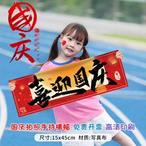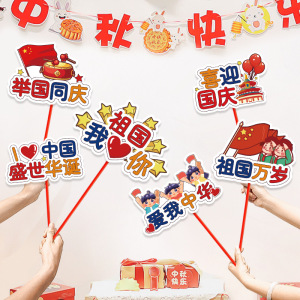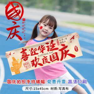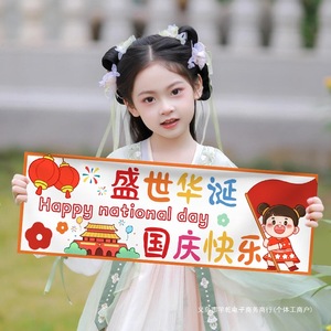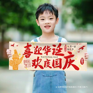 国庆节手举横幅条幅幼儿园创意拍照道具中秋游戏氛围活动布置装饰