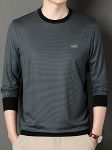 2025春季新款圆领长袖T恤男士时尚韩版中年休闲百搭秋装上衣男装