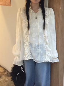 漫旅罗马尼亚2025秋季气质温柔小姐姐衬衫高级感花边蕾丝娃娃衬衣