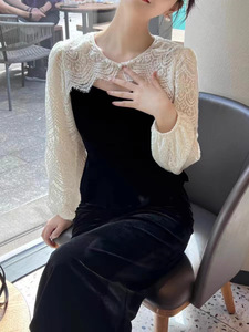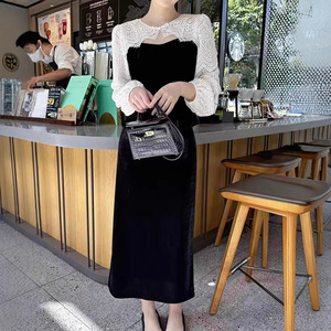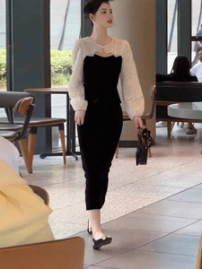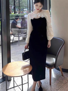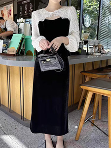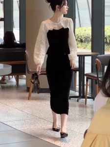 秋装搭配一整套2025新款法式轻熟风洋气显瘦黑色丝绒裙子两件套装