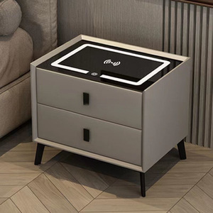 智能床头柜现代简约无线充电轻奢网红床边柜实木多功能卧室储物柜