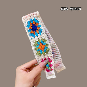 针织刺绣魔术贴发带女刘海碎发整理实用民族风发箍刘海贴发卡批发