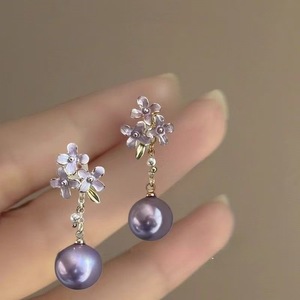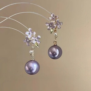 紫色桂花珍珠耳环