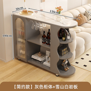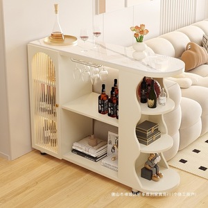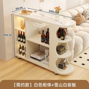 奶油风吧台桌子家用酒柜实木隔断柜客厅岩板餐边柜厨房可移动橱柜