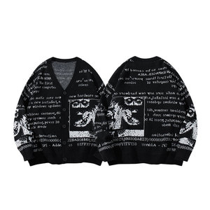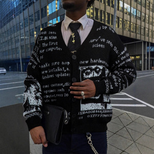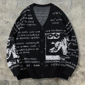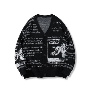 安德烈|美式满印字母毛衣开衫2025新款宽松街潮情侣V领长袖针织衫