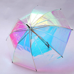 时尚七彩镭射伞长柄透明网红幻彩雨伞可印字直杆舞台伞umbrella