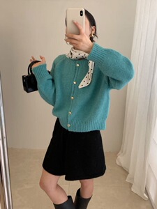 2025年秋季韩系金扣韩标多彩软糯针织开衫(含5.4绵羊毛)毛衣女