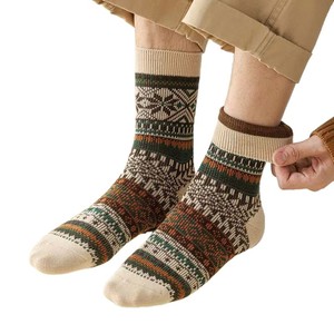 袜子男双针双路中筒棉袜秋冬款复古民族风防臭吸汗男士长筒袜批发