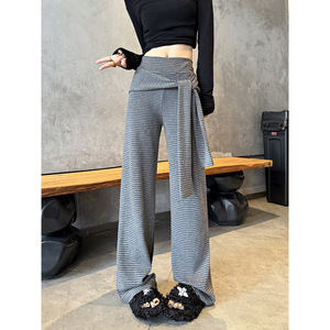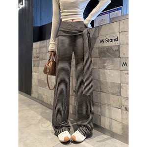 CHAO级推荐! 辣妹条纹运动休闲裤女秋冬高腰百搭直筒窄版瑜伽裤子