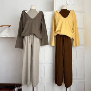 秋上新!抽绳连帽深V领外搭长袖休闲宽松简约毛衣