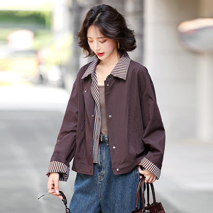 洋气假两件外套女春秋2025新款中年妈妈减龄宽松气质翻领夹克上衣