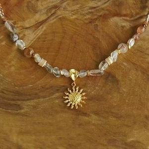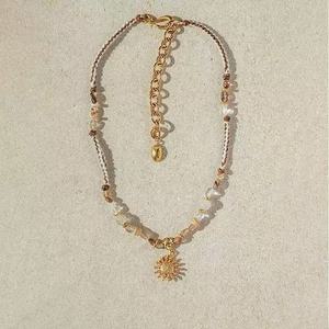 日出设计度假休闲白串珠锁骨链复古编织太阳花气质高级天然石颈链