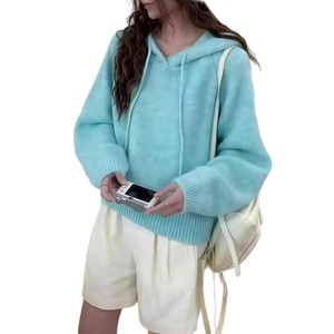 连帽套头毛衣女秋冬新款外穿浣熊绒宽松时尚韩系休闲百搭针织毛衣