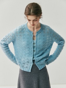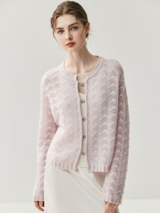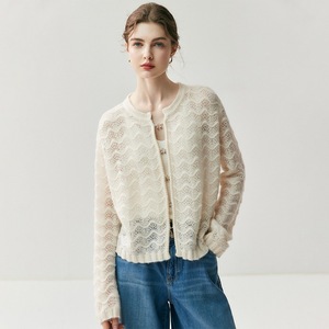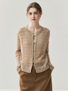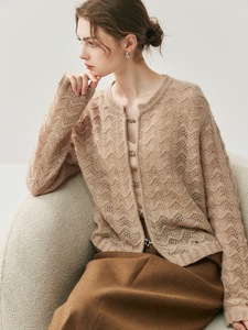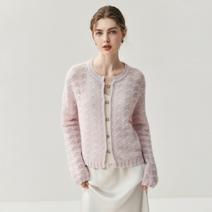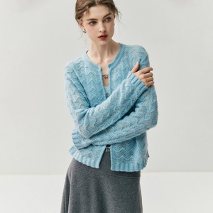 2025时尚女装新款提花圆领镂空羊绒针织开衫春秋小外搭羊绒外套女