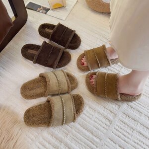 毛毛拖鞋女时尚外穿2025新款复古松糕丑萌平底棉拖鞋懒人一字拖鞋