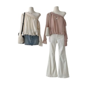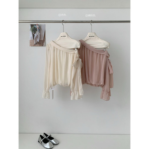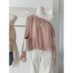 法式气质斜肩不规则飘带衬衫女早秋季新款宽松显瘦设计感别致上衣