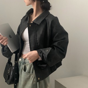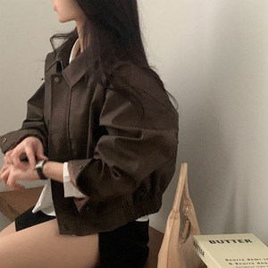 韩国chic 2025秋日新品法式复古小众拉链麂皮绒夹克短外套女百搭