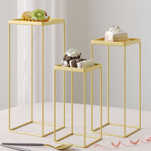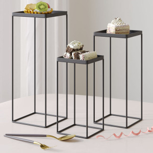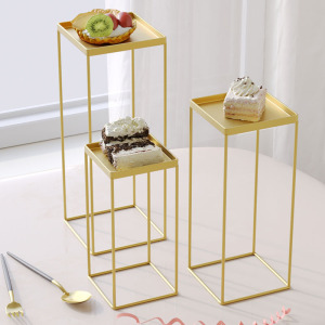 甜点纸杯架高台婚礼布置金属展示托盘三件套方形纯白色铁艺蛋糕架