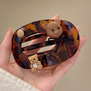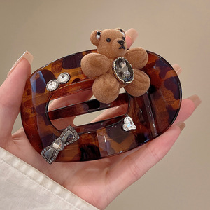 复古丝绒小熊后脑勺抓夹盘发贝壳夹发夹女2025年新款气质鸭嘴夹子