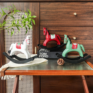 北欧复古木质摇马雕像摆件家用圣诞节日装饰小型场景氛围布置礼物