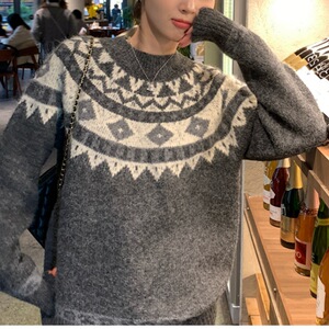复古2025秋装新款女装时尚百搭设计感费尔岛针织衫软糯毛衣外套潮
