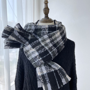 日系仿羊绒格纹围巾女韩版秋冬学生百搭长款围脖保暖披肩两用休闲