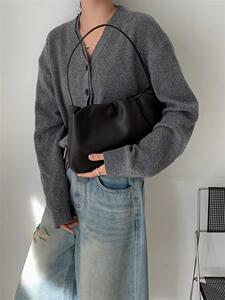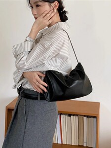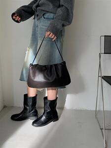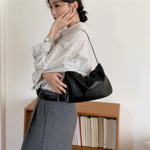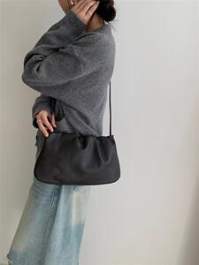 头层羊皮褶皱云朵包腋下hobo包包女极简百搭单肩包真皮斜挎饺子包