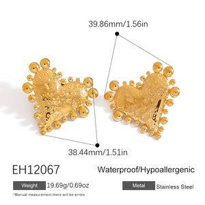 跨境不锈钢耳钉文艺复古爱心饰品纹理高级感耳坠18K金保色耳饰
