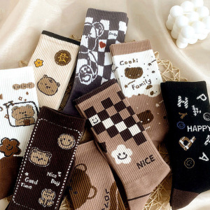 咖色袜子长筒袜潮流韩版ins潮秋冬加厚大地色复古百搭日系棉袜