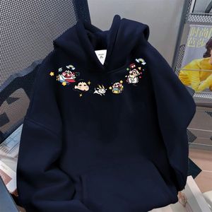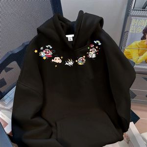 日系卡通蜡笔小新连帽卫衣女小个子秋冬宽松慵懒风外套潮