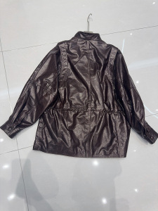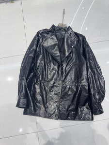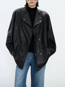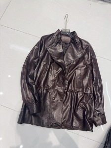 欧洲站2025秋新款抽绳油蜡绵羊皮真皮皮衣女中长款复古皮夹克外套
