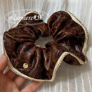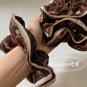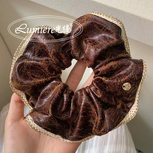 韩国高级感深棕进口裂纹小羊皮金标大肠发圈时髦小众高档发绳新款