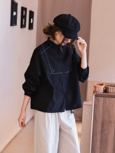厂家批发秋季新款宽松长袖黑色衬衣纯棉时尚简洁英伦外穿